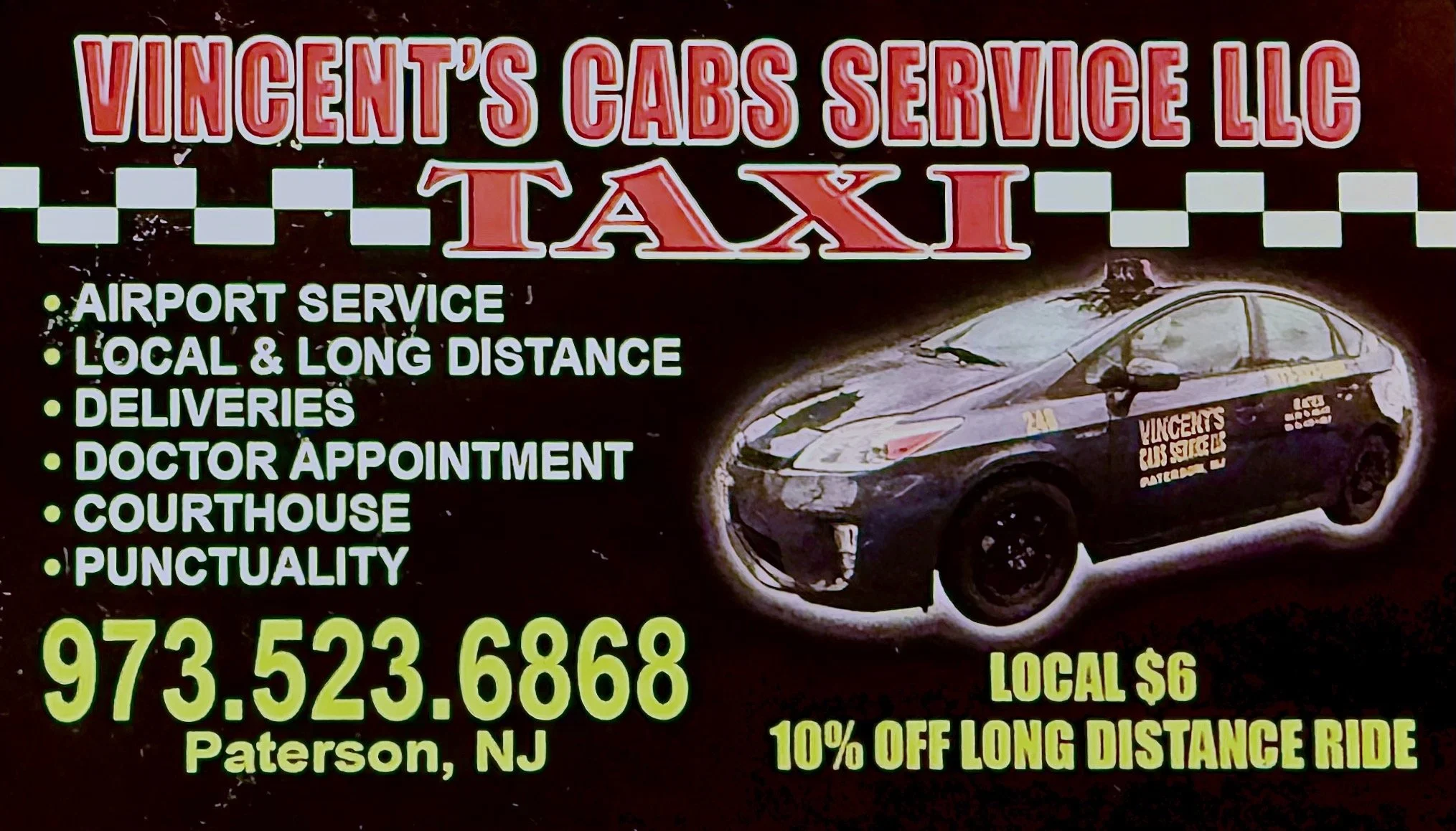 Vincent’s Cabs Service is our taxicab service, and you can reach us 24/7 in the Passaic County area of New Jersey.